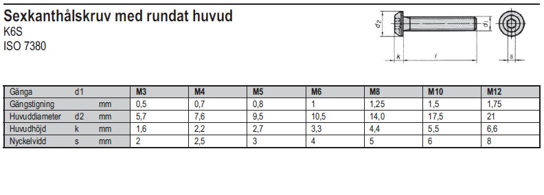 ISO 7380 kullrig insexskruv syrafast A4. 20 st / förpackning.