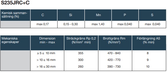 FYRKANTSTÅNG S235JRC+C 30X30Kalldragen fyrkantstång kvalitet SS1312 , S235JRC+C, EN 10278 tolerans h11. 213932.250 170 kr / stk.- Lagerstatus