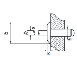 Kullrig blindnit med extra stor skalle. Nit i aluminium och splint av stål.