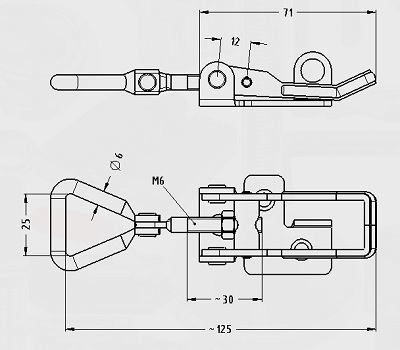 Ställbart excenterlås i förzinkat stål med låsögla. Passande hake : BPG-11, BPG-13, BPG-14.