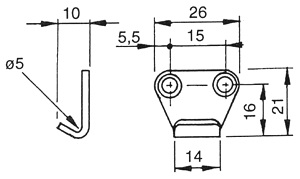 Hake förzinkat stål till excenterlås. Hål för skruv = 5mm, Godstjocklek = 2mm