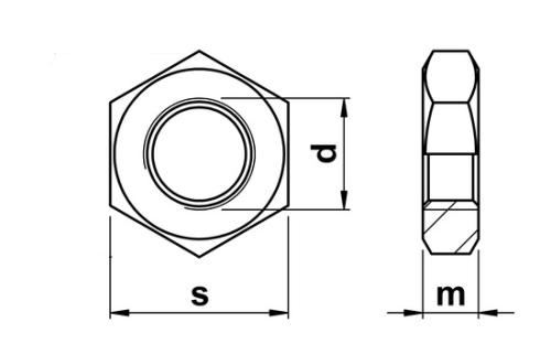 DIN 936 Låg sexkantmutter förzinkad blank. Cirka 50 st / förpackning.