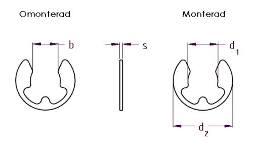 b = 3,34 mm ; s = 0,7 mm ; d1 = 4 mm ; d2 = 9,3 mm
