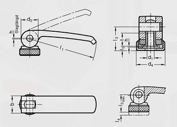 Excenterspännare i zinktryckgods med invändig gänga i förzinkat stål. Fingängad justeringsmekanism i förzinkat stål och glasfiberarmerad termoplast.