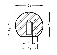d1 = 25 mm ; d2 = M6 ; d4 = 15 mm ; h = 22,5 mm ; t1 = 11 mm