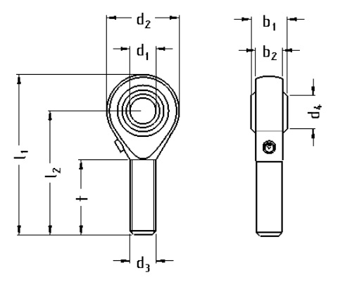 d1 = 10 mm ; d2 = 28 mm ; d3 = M10 ; d4 = 12,9 mm ; b1 = 14 mm ; b2 = 10,5 mm ; l1 = 62 mm ; l2 = 48 mm ; t = 29 mm