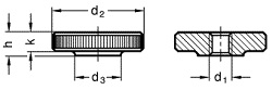 d1 = M8 ; d2 = 30 mm ; d3 = 16 mm ; h = 8 mm ; k = 6 mm
