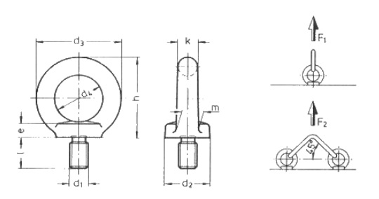 Smidda lyftöglor / öglebult i förzinkat stål (C15E). Bearbetad anliggningsyta.