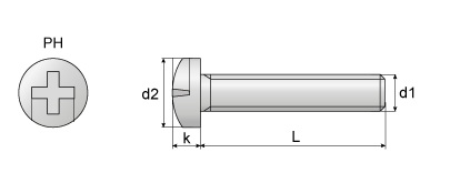 d1 = M3 ; L = 50 mm ; d2 = 5,6-6 mm ; k = max 2,52 mm