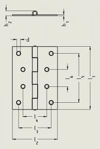 Kantgångjärn i rostfritt stål med försänkta hål.