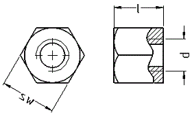 Trapetsgängad sexkantsmutter. Material: 1.0737, SS1912.