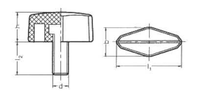 d = M6 ; l2 = 15 mm ; l1 = 32 mm ; b = 15 mm ; h = 17 mm