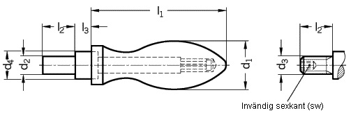 Vridbart handtag i förzinkat stål med gängad tapp.